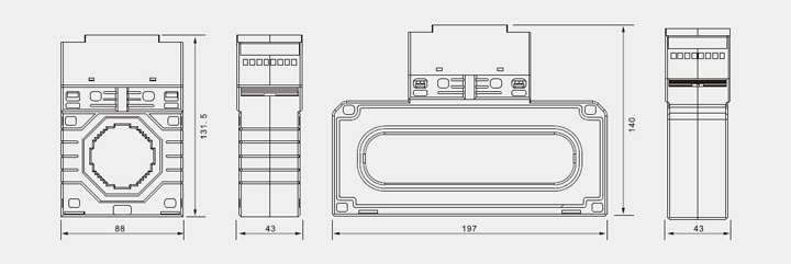 型号 长x宽x高 开口尺寸 电流值 G5S-45型 88x43x131.5 Φ45 0-225 G5S-65型 110x43x150 Φ65 0-400 G5S-600型 190x43x140 150x36 0-630